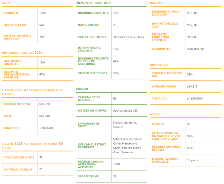 안녕하세요? 조기유학 & 영어캠프 전문 이데아입니다. 오늘은 캘리포니아 주 오하이(Ojai) 계곡에 위치한 명문 기숙 보딩스쿨 The Thacher School을 소개해 드리겠습니다. The Thacher School은 사립 기숙형 남녀공학 고등학교(Grade 9–12)로, 캘리포니아주 오하이 밸리의 아름다운 자연환경 속에서 학문·예술·체육·리더십을 균형 있게 키우는 전인교육을 지향합니다. 1889년 설립되어 긴 전통을 가진 학교이며, 캠퍼스 안에서 학생들이 산과 말(horses)과 함께 배우는 독특한 교육 문화를 갖고 있습니다. The Thacher School 한눈에 보기 총 재학생 수: 253명 (Boarding 230 / Day 23) 국제학생 비율: 17% (13개국 24개 주 출신) 학생 다양....... <img src="https://blogthumb.pstatic.net/MjAyNTEwMjNfMjU2/MDAxNzYxMTk2MTA2Nzkw.eOjjXIffxQVZRXG3DDMhglZAtubwwOi-AEtgrLk6Mxwg.aFtKLoYUCUylD0b1wXwgoKyzIcCzcmBZOdS5RzKJy0sg.PNG/image.png?type=s3" />