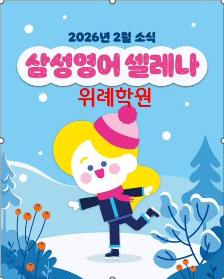 삼성영어 위례학원입니다. 입춘이 지났음에도 여전히 공기는 차갑지만, 학원에 들어서는 우리 제자님들의 발그레한 두 볼에서 봄의 생동감을 먼저 느낍니다. 매번 2월이 되면 '어떻게 하면 우리 아이들이 더 즐겁게 새 학기를 맞이하게 할까'라는 고민을 합니다. 새 학년이라는 큰 변화를 앞둔 지금, 우리 아이들에게 가장 필요한 것은 할 수 있다 는 확신입니다. 2월 한 달간 삼성영어 위례학원은 다음과 같은 가치에 집중합니다. *자기주도적 학습 습관: 누가 시키지 않아도 스스로 몰입하는 즐거움 *빈틈없는 기초 설계: 레벨별 정확한 기본기를 다지며 학습의 자신감 키우기 *따뜻한 유대감: 원장인 저와 모든 선생님이 아이들의 든....... <img src="https://blogthumb.pstatic.net/MjAyNjAyMDlfNjQg/MDAxNzcwNTk5MDg0NTEz.OzXideZpCyyW6FlrB3cRt-RDM8QmP-VZavHToywB4_Mg.M8adEaN-BUT1fmanWA_1BE-ky2OlWvcIRrp5aFNLCeYg.PNG/1.png?type=s3" />