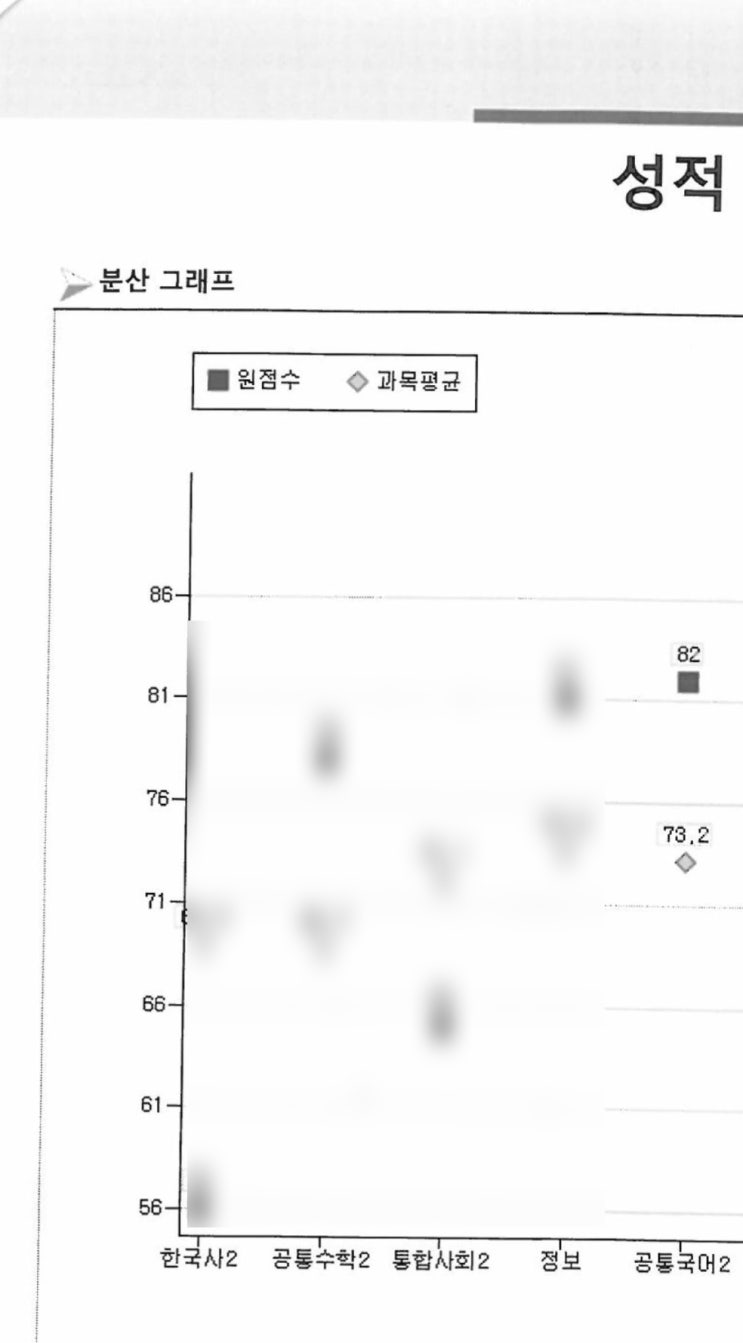 안녕하세요~ 오랜만에 쓰는 성적 상승 뉴스입니다. 블로그를 매일매일 써봐야하지 하지만 방학 특강도 진행중이고 바쁘기도 하니 선뜻 손이 가지 않다가 우리 영동일고 학생의 성적을 자랑하고 싶어 블로그를 켰습니다. 이건 지난 1학기 때 성적표인데요 중간고사가 67점이었는데 기말에서 82점으로 오르는 모습을 보여주었죠~ 1학기 때부터 꾸준히 상승곡선을 그리다 또 방학 때 초심을 잃었는지 중간 고사 성적이 64점이 됩니다. 그래서 심기일전으로 기말고사를 준비해서 총점 82점 2등급으로 1학년을 마무리하게 되었습니다. 영동일고 1학년 성적 분포도를 보면 공통국어2의 평균은 73.2점이니 82점이 2등급이란 것을 알 수 있습니다. 중간고....... <img src="https://blogthumb.pstatic.net/MjAyNjAyMTBfMjI2/MDAxNzcwNzI5NjI3NjQ4.331-ElcsTSwEeI24yhwDZNjf1nLu0X8voMh8uByceKUg.Pc-QRZfml4NTYuzJfvBjxqCgqbyFkaNMeUYt8XZKKqMg.JPEG/%C0%B1%BF%B9%C1%F8%BC%BA%C0%FB%C7%A5-images-3.jpg?type=s3" />
