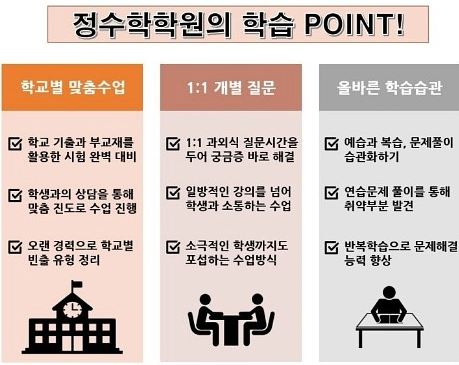 겨울방학은 다음 학년을 준비하는 시기인만큼 알차게 보내야합니다. 방학에 많은 준비를 한 사람만이 그 다음 학기에 원하는 성적을 얻을 수 있습니다. 성내동수학학원 정수학이 초3~고3 학생을 대상으로 '프리미어 방학 특강'을 운영합니다. 수학은... 앞선 단원에 대한 충분한 학습이 이루어지지 않으면 다음 과정의 진도가 더딜 수 밖에 없습니다. 방학은 그 동안 부족했던 분야를 한단계 뛰어 넘을 수 있는 도약의 기회로 삼아 부족한 부분, 앞으로의 공부 계획을 대비할 수 있는 시간으로 만들어야 합니다. 정수학 방학 특강은 개념-응용-심화 단계별 구성, 매 수업 테스트로 반복 점검, 유형·변형 문제 정리, 개인 진도 기반의 심....... <img src="https://blogthumb.pstatic.net/MjAyNTEyMjFfMTA2/MDAxNzY2Mjc3OTg4MzUx.12A4WPCgkjY923tTmE6UF8JnMHH7nLWbH_4DPxTKZvsg.94NkaGHCEpHJP7NIA57pBBM0tyTbACrHS3W6_YGPJWQg.PNG/%C1%A4%BC%F6%C7%D017.PNG?type=s3" />