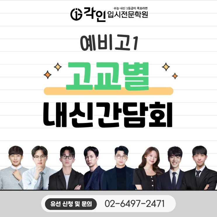 강동구 내신을 가장 잘 아는, 각인입시전문학원입니다. 입시에는 리허설이 없습니다. 매 시험이 실전입니다. 시작부터 진짜 전문가에게 맡겨야 원하는 성적을 얻을 수 있습니다. 학교마다 시험 유형, 수행평가 비중, 출제 스타일이 모두 다른 만큼 내신은 '학교별 전략'이 핵심입니다. 강동구 학교별 내신전략을 가장 잘 아는 각인학원에서 학교별 내신 성공 전략을 세세히 알려드릴 예정이니 많은 참석 부탁드립니다. 예비고1 학교별 내신 간담회 ✔ 학교별 실제 내신 기출 분석 ✔ 학교별 성공적인 내신 대비 전략 간담회 일정 ✔ 대상 : 예비고1 자녀를 둔 학부모님 ✔ 학교별 일정 안내 - 2월 7일 토요일 • 광문고 : 오전 11....... <img src="https://blogthumb.pstatic.net/MjAyNjAxMjlfMjIz/MDAxNzY5NjY4ODQxODEw.WuGaBGot9juTLKn9KIGPdvfuFFTRrbn4yHIDCcDUb3Ig.-QXBuJfRGZq4WsukFmOPw7dF5b38LTSHu7ZlRBUFwHkg.JPEG/1.jpg?type=s3" />