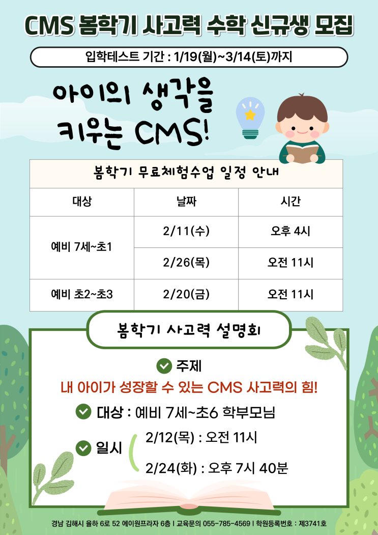 [CMS김해율하] 봄학기 신입생 테스트 & 체험수업 및 설명회