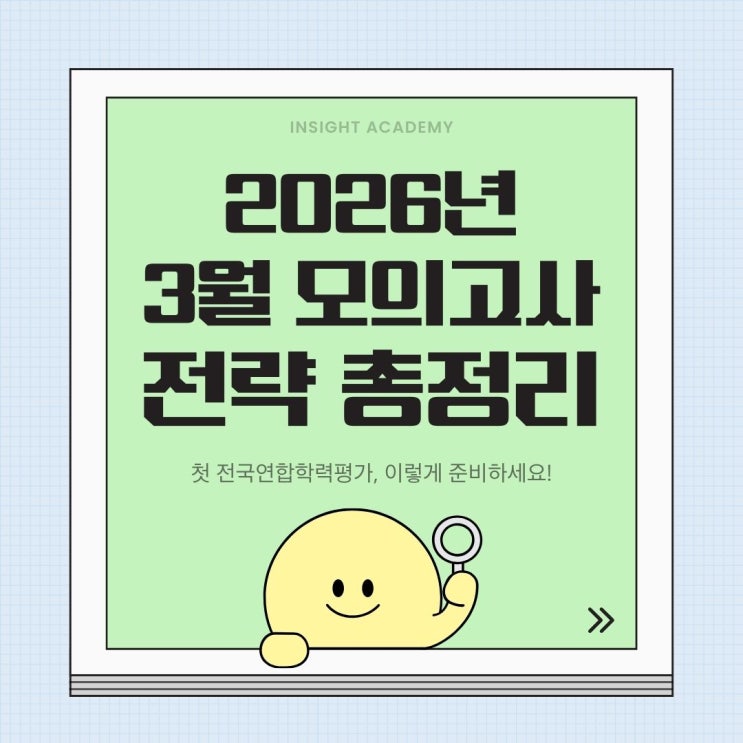 안녕하세요, 인사이트학원입니다. 2026년 3월 24일 시행되는 전국연합학력평가를 앞두고 학생들이 반드시 알아야 할 시험 전략을 정리했습니다. 고등학생들에게 3월 모의고사는 한 해의 학습 흐름을 확인하는 첫 시험입니다. 특히 고3 학생들에게는 수능을 향해 가는 과정에서 현재 자신의 위치를 객관적으로 점검할 수 있는 첫 평가이기도 합니다. 많은 학생들이 첫 시험 결과에 크게 흔들리기도 하지만 3월 모의고사는 점수를 평가하기 위한 시험이라기보다 학습 방향을 확인하는 시험 에 가깝습니다. 3월 모의고사는 성적을 결정하는 시험이 아니라 ‘현재 위치를 확인하는 시험’입니다. 따라서 결과에 지나치게 의미를 두기보다는 지금까지....... <img src="https://blogthumb.pstatic.net/MjAyNjAzMDVfMjQy/MDAxNzcyNjkzMjAzNTE0.jZSiBNdaJOV_hknvR35qiaM7Dr_pvH0Um-QqtnDOPNgg.VvDGzAWjSq3edOq7fU50VUc-vGJeszRF1uqj8XoJG0cg.JPEG/1.jpg?type=s3" />