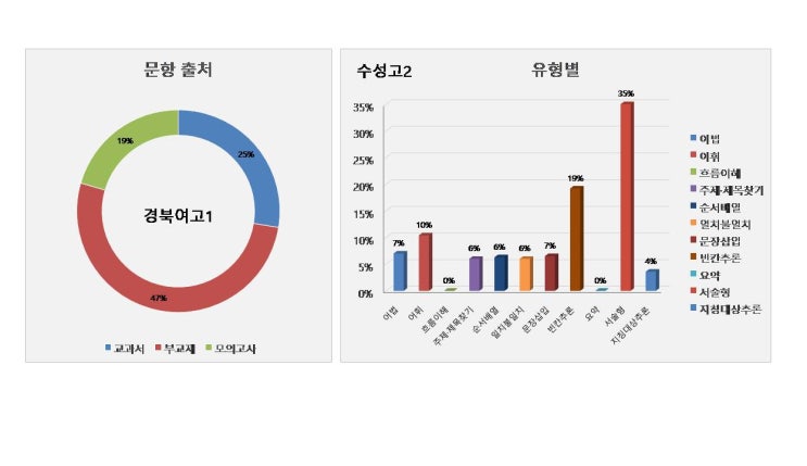 경북여고 영어내신을 3년간 전담한 선생님이 지도합니다! 1. 출제범위 부교재: 수능특강 Light 영어 21강, 22강, 23강, TEST(9,10,11,24~28번 제외) 모의고사: 2025년 10월 모의고사 18-40번 교과서: 3,4과 2. 문항구성 객관식 65점 서술형 35점 3. 출처당 문항 배점 교과서: 객관식 3문제 (10.1점) / 서술형 2문제 (14점) 부교재: 객관식 11문제 (36.2점) / 서술형 3문제 (21점) 모의고사: 객관식 6문제 (18.7점) 4. 문항출처 / 문제유형 5. 내신 핵심전략 ★ 시험총평 ★ 타 학교에 비해 객관식 서답형 모두 어렵지 않고 기본 영어실력을 요구하는게 아니라 얼마나 성실하게 공부를 했냐를 보는 시험 ◆꼼꼼한 시험대비 학습만으로 객관식 문제....... <img src="https://blogthumb.pstatic.net/MjAyNjAxMTNfMjcz/MDAxNzY4Mjg0NDY0MjU1.KJfFGgWGwwsFpcgf9t6L_Ry4lObvZByjUfvTgjt9bOcg.jFhFjvwOi8EkRESmMY0JyDZTHQ6iXaTzK9PJViYx8bgg.JPEG/%B0%E6%BA%CF%BF%A9%B0%ED1.jpg?type=s3" />
