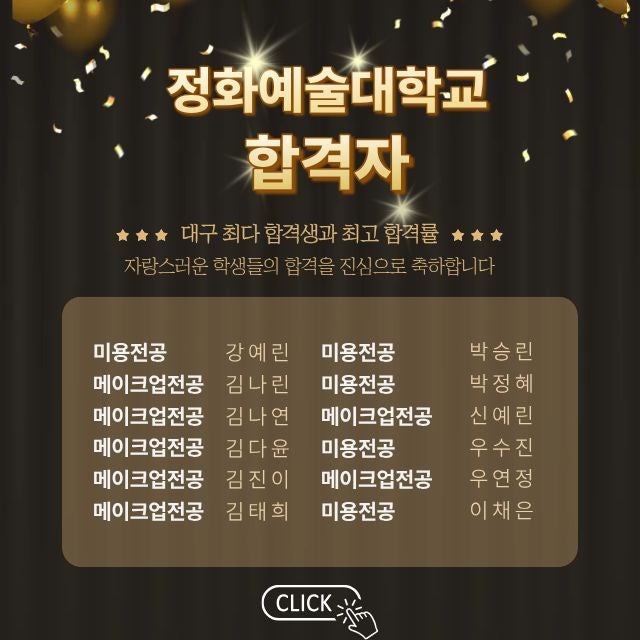역시!!! 대구 최다 합격 " 정화예대 헤어미용&메이크업과 전원합격 " 대구중구동성로미용입시학원:에르모소뷰티아카데미