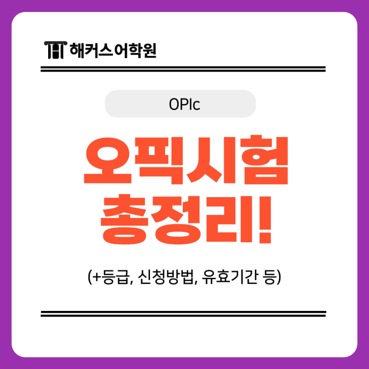 안녕하세요, 여러분! 오늘은 오픽(OPIC)시험과 관련된 구체적인 정보들을 알아보려고 합니다. OPIC은 국제 공인 외국어 말하기 시험으로 컴퓨터를 활용해 1:1 방식으로 진행되는데요. 특히 실제 수험자의 회화 능력을 측정하기 위해 수험자의 배경과 관심에 맞는 문항이 출제되며, 본 어학 성적은 취업 및 승진 등에 활용됩니다. 오늘은 바로 이 OPIc과 관련된 정보를 오픽 시험 신청 기간 및 신청 방법, 응시료, 유효기간, 등급 등 세부적으로 알아볼 테니 지금부터 잘 따라와 주시기를 바랍니다 :) 오픽 등급 체계 OPIC에서는 실제 수험자의 말하기 능력을 객관적으로 평가해 다양한 상황 속에서 언어를 얼마나 효과적으로 사용하는지를 측정하....... <img src="https://blogthumb.pstatic.net/MjAyNTEyMjJfMjcw/MDAxNzY2MzY1MDk3NjI0.RisnAykXFqgdQUc1_g58MX1i9WkAjoLhn0DEDLQrGVAg._trAw8HwxxwPEQpSVkkn6XWj1vyMYL2xV2rxa3ClKBUg.PNG/%BF%C0%C7%C8%C0%AF%C8%BF%B1%E2%B0%A3.png?type=s3" />