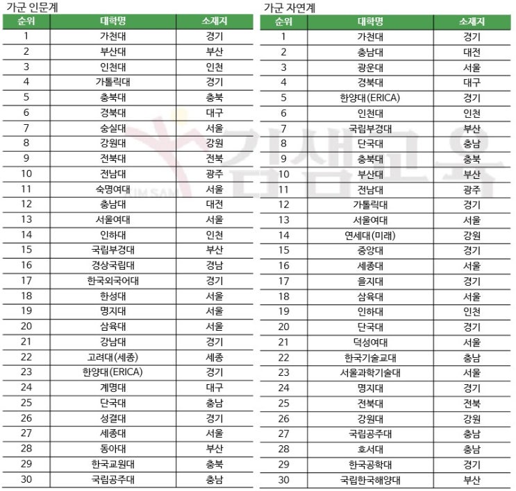 수능 3~4등급 학생들이 가장 많이 지원하는 대학 30