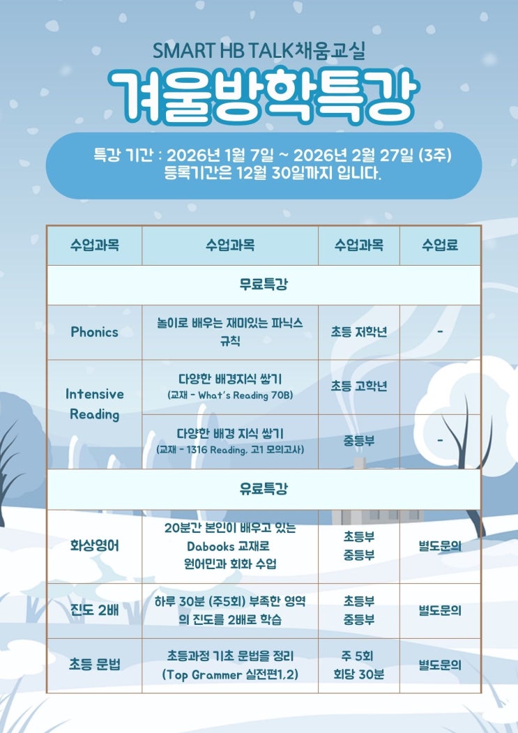 [방촌동 영어학원] 겨울방학 및 특강 안내 드립니다.