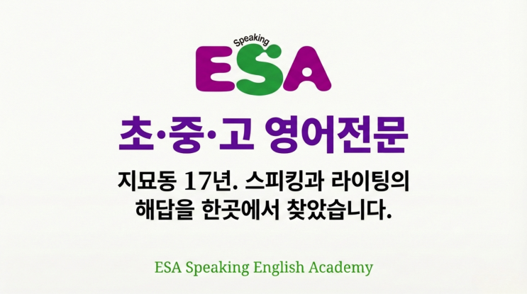지묘동 ESA 영어학원 17년의 자부심, 초등학교 때 잡은 '언어습관' 하나가 고등학교 내신 3년을 결정합니다.