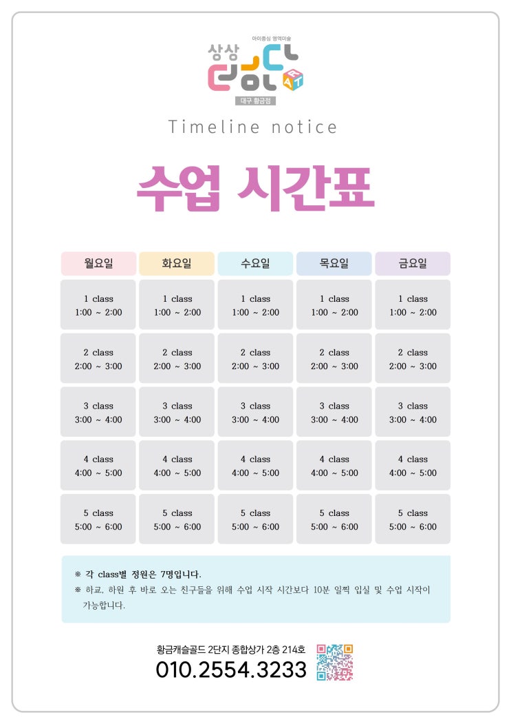 상상더하다미술 수업 시간표 안내