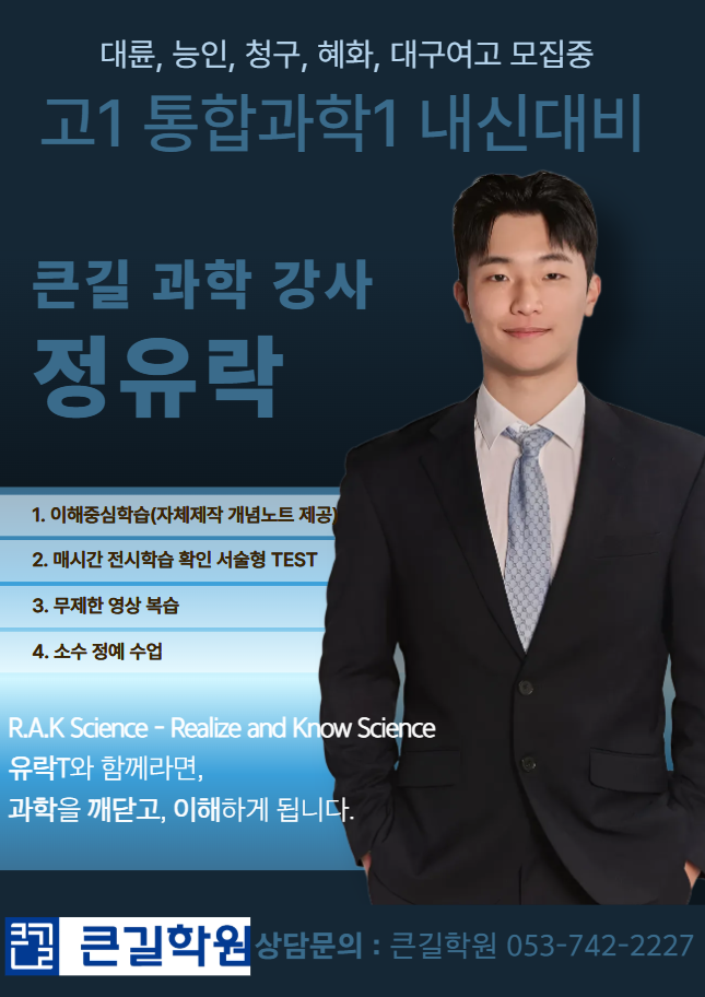 [큰길학원] 고1 1학기 통합과학1 내신대비 강의 안내