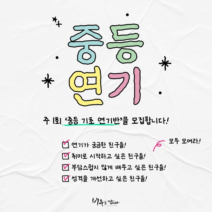 중학생 연기 기초 취미반 OPEN‼️ 중학생이라면 누구나 가능합니다! | 인천연기학원, 부평연기학원, 부천연기학원