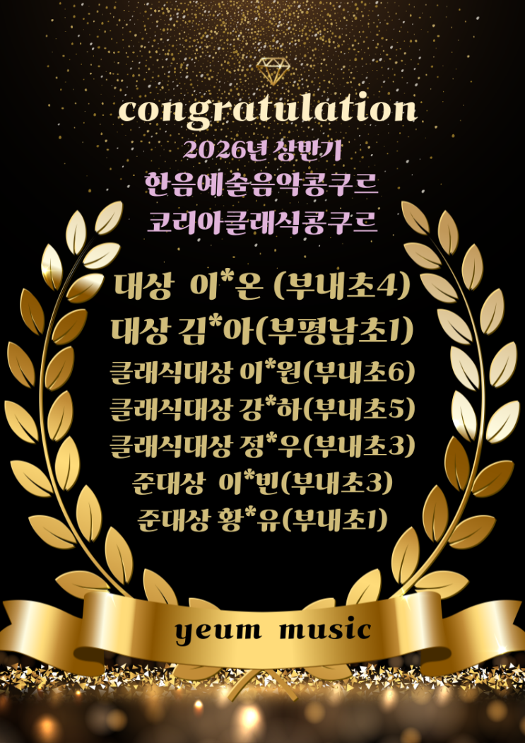 콩쿨대상수상 | 부개동피아노 예음음악학원