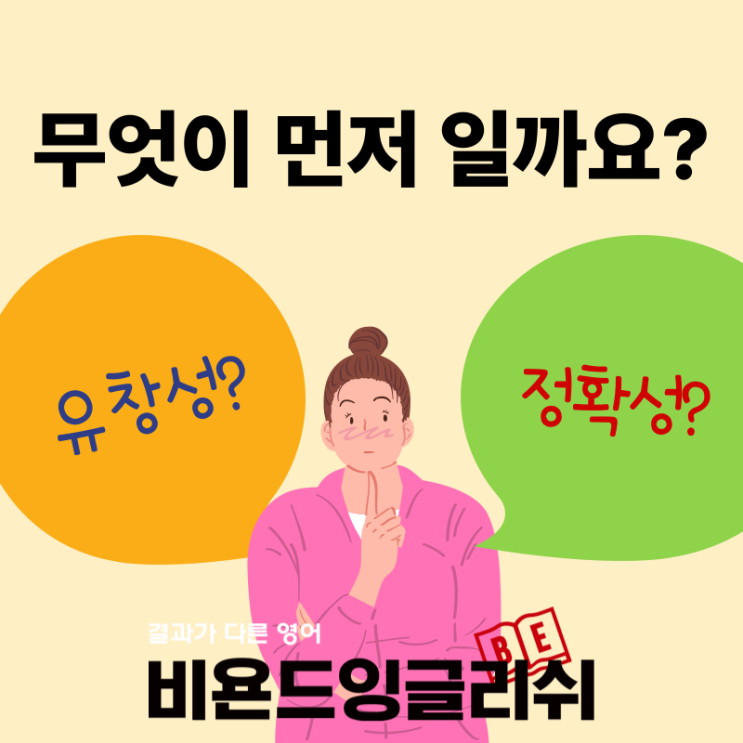 산곡동 청천동 영어학원 비욘드잉글리쉬 입니다. 요즘 넷플릭스 같은 OTT서비스로 미국드라마 또는 영화 많이 시청하시죠? 재밌게 보시면서 이런생각도 하실겁니다. '영어 진짜 잘한다... 우리아이도 저렇게 할 수 있었으면 좋겠네...' 대한민국에서 영어를 잘 하는 길, 무엇을 우선적으로 여겨야 하는지 말씀드리겠습니다. 한국에서의 영어학습, 유창성보다 정확성이 먼저입니다. 당연한 말이겠지만, 많은 부모님들이 우리 아이가 원어민처럼 술술 말하는 유창성(Fluency)을 갖기를 바랍니다. 하지만 한국에서 영어를 배우는 환경은 외국에서 영어를 배우는 환경과 근본적으로 다릅니다. 외국에서는 일상생활 자체가 영어에 노출되는....... <img src="https://blogthumb.pstatic.net/MjAyNTEyMDlfNzQg/MDAxNzY1Mjg4MzQ2NjE4.tZdlcBQD4NOR-99LN314nKg_5aohGoVNO00obSe0Plwg.qaAeRxD71y65tIG8YUJRlN-rPS0c9y_ZRAQBYK4xx1Ug.PNG/%C1%A6%B8%F1%C0%BB-%C0%D4%B7%C2%C7%D8%C1%D6%BC%BC%BF%E4_-017.png?type=s3" />