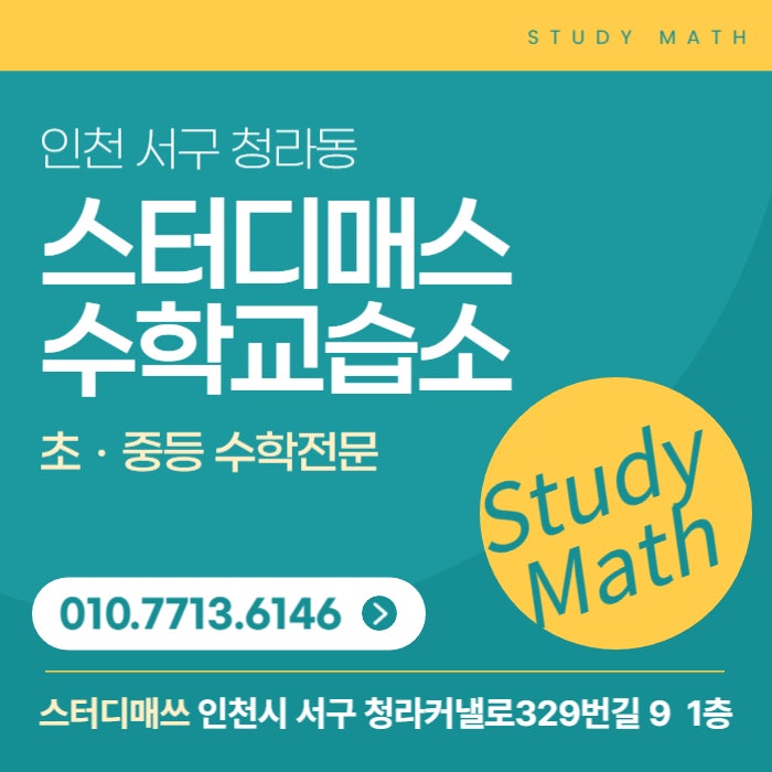 수학은 한 번 흐름이 끊기면 다시 붙이기까지 많은 시간이 걸리는 과목입니다. 그래서 더더욱 중요한 것이 아이의 현재 수준을 정확히 이해하고, 그에 맞는 방향으로 이끌어주는 수업입니다. 인천 서구 청라동에 위치한 스터디매쓰수학교습소는 20년간 교육 현장에서 쌓아온 원장님의 경험을 바탕으로, 아이의 속도와 이해를 최우선으로 생각하는 수업을 이어가고 있습니다. ‘바르게 보고 바르게 가르친다’는 신념 아래, 수학의 기본을 단단히 다지는 데 집중합니다. 20년 교육 경력, 청라 12년이 만든 현실적인 수업 방향 스터디매쓰수학교습소의 수업은 20년 동안 교육업계에 종사해 온 원장님의 경험에서 출발합니다. 특히 청라 지역에서만....... <img src="https://blogthumb.pstatic.net/MjAyNjAyMTBfODgg/MDAxNzcwNzAyOTc5MzY1.7v-QGc3a6Gm3wSlcm-3XFaA5KEBObONbBxC84wmiN4og.QDfMNKFXt8fQFPpyVYSXpw2OjkmH7UML6BPtaAxMqT4g.JPEG/%C0%CE%C3%B5_%BC%AD%B1%B8_%C3%BB%B6%F3%B5%BF_%BD%BA%C5%CD%B5%F0%B8%C5%BE%B2%BC%F6%C7%D0%B1%B3%BD%C0%BC%D2_%281%29.jpg?type=s3" />