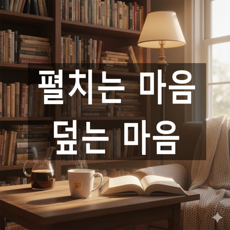 '펼치는 마음과 덮는 마음' 책장 앞 아이의 마음