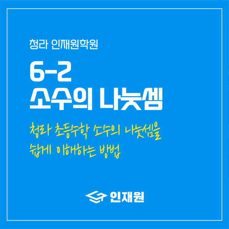 6-2. 2단원 소수의 나눗셈 - 초등 수학, 아이들이 배워야 할 중요한 개념 안녕하세요 청라교과수학 청라 인재원 입니다. 이번 수학 수업에서는 소수의 나눗셈을 배우고 있습니다. 소수는 일상생활에서 자주 사용되는 숫자이고 이를 잘 다룰 수 있으면 수학적 사고력과 문제 해결 능력이 크게 향상됩니다. 이번 수업을 통해 아이들이 무엇을 배우는지, 왜 중요한지 설명드릴게요 소수의 나눗셈, 왜 중요한가요? 소수의 나눗셈은 수학적 원리를 이해하고 문제를 해결하는 능력을 기를 수 있는 중요한 과정입니다. 이 수업을 통해 아이들은 수학적 사고력을 키우고 일상에서 하게되는 비율 계산 돈 계산 등을 더 쉽게 해결할 수 있게 됩니다. 이번 수....... <img src="https://blogthumb.pstatic.net/MjAyNjAyMDlfMjc0/MDAxNzcwNjE2OTUxMTgx.RL1ELGYQ4WmmXcOWDmFkSvnI-m5CtkNfmuYNCh5aH_cg.3FYR969lK7exO-tXzimjc93rNefdDv1gjqZ2p2T_kwYg.PNG/%B4%EB%C1%F6_7.png?type=s3" />
