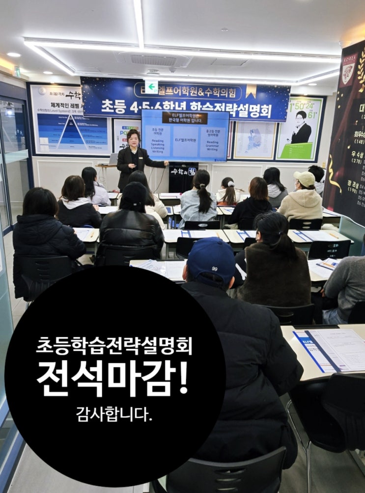 초등 4·5·6학년 학습전략 설명회, 좌석 가득 마감되었습니다!(by 율하영어학원 엘프어학원)