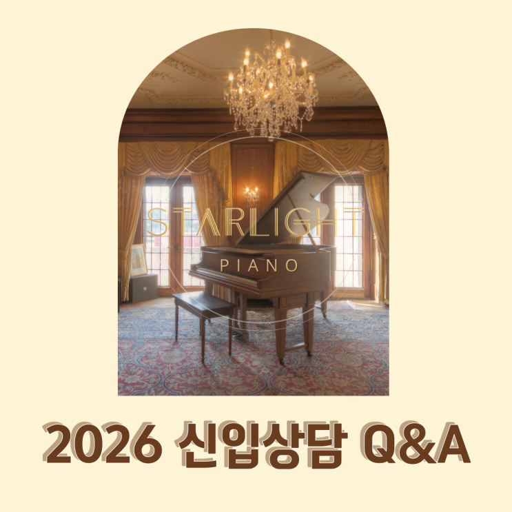 안녕하세요, 별빛가득 원장입니다:) 2026년 새해가 밝았네요. 모두들 건강하시고, 작년에 미루었던 행복까지도 풍성히 누리시는 새해되길 소망합니다. 블로그에서는 오랜만에 글을 쓰게 되었는데요. 조금 더 활발한 움직임은 인스타로 하고 있습니다. 별빛가득은 새뜸마을 4단지내 상가에 위치한 작은 피아노 교습소로, 저 혼자 티칭과 상담 등 전반적인 운영을 하고 있습니다. 그 중 '상담'부분에 대해 정보를 미리 제공해 드리고자 합니다. 1월은 신입문의가 가장 많은 달입니다. 자주하시는 질문들을 모아놓았으니, 도움이 되셨으면 합니다. *1월 5일 현재기준 3명정도 충원가능합니다. 단지, 방학으로 인한 스케줄 변동으로 타임당....... <img src="https://blogthumb.pstatic.net/MjAyNjAxMDVfMTkx/MDAxNzY3NTkxNTM3MzU4.d8jE5XR1IgSCxM6uas5BXAKozAv6LrLFA4ydJ_I10Hog.krcSTCL3A09bSIHQsJk_sfTwse6cjl258znN73ZrhWkg.PNG/001.png?type=s3" />