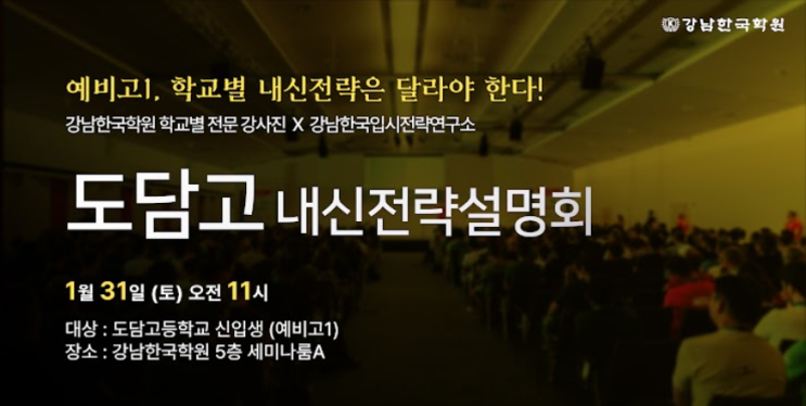 도담고 예비고1 정확히 알고 준비하셔야합니다. 그동안 누구도 말해주지 않은 도담고 합격생에게 꼭 필요한 도담고 내신 특급 정보 도담고 전문 강남한국학원입니다! 설명회 신청 ☞ https://forms.gle/Cz4XMFt6s3aXedyJA 영어 박태양T 도담고 영어의 최강자! 2025학년도 도담고 전체 전교 1등 배출!! 대표강사 최혁T (과학) 최혁T, 캠퍼스고 1학기, 2학기 전체 전교1등 석권!! 수강생 104명 1등급! 통합과학, 생명과학 1등급 다수배출!! 국어과 / 도담고 내신과 수능을 모두 잡다 수학과 / 개념부터 심화까지 도담고 레벨별 완벽 대비 설명회 신청 ☞ https://forms.gle/Cz4XMFt6s3aXedyJA ☞ 홈페이지 www.kkoreaedu.com ☞ 상담문의 <img src="https://blogthumb.pstatic.net/MjAyNjAxMTZfMTU4/MDAxNzY4NTM1MjI3NDUz.EGBLUhy58RpzKXPwGc_YV40nX3sNowlp-wyt_DKG5bAg.QjOYEBE4a7jaPded01o3HTVl-13IZxbGIQUwF-Y6rLMg.PNG/image.png?type=s3" />
