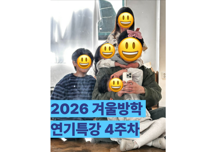 안녕하세요! 영통연기학원 인트엔터테인먼트 입니다. 오늘은 2026 겨울방학 연기특강 저학년 4주차 수업 사진을 가져와 보았는데요! 4주차 수업에서는 새로운 대본을 받고 아이들이 먼저 천천히 리딩을 하여 이야기를 파악 한 후 각자 맡은 캐릭터는 어떤 신체표현을 하는지 자유롭게 움직이는 시간이였습니다! 리딩 시작 자유로운 신체표현 아직 대본 암기에는 어려움을 겪고 있지만 대본을 들고 자신이 맡은 캐릭터의 동작을 상상하여 자유롭게 움직이는 시간을 가져보았습니다! 다음주 5주차 수업에서는 더 입체적인 대본을 가져와 아이들에게 더 큰 동선을 추가할라고 합니다! 수업 문의 https://naver.me/GeUkWSfE https://cafe.naver.com/i....... <img src="https://blogthumb.pstatic.net/MjAyNjAyMDlfODQg/MDAxNzcwNjE2MDk1Mjg2.u8MMEc1mWzfj6Wq7IxrTV_IHryygMIGJzGvNjZqF89Eg.UfpTSBjZ4LB4p4XE56iImgCNdTh4TobEzD2paoVlOVMg.PNG/%C1%A6%B8%F1%C0%BB_%C0%D4%B7%C2%C7%D8%C1%D6%BC%BC%BF%E4._%281%29.png?type=s3" />