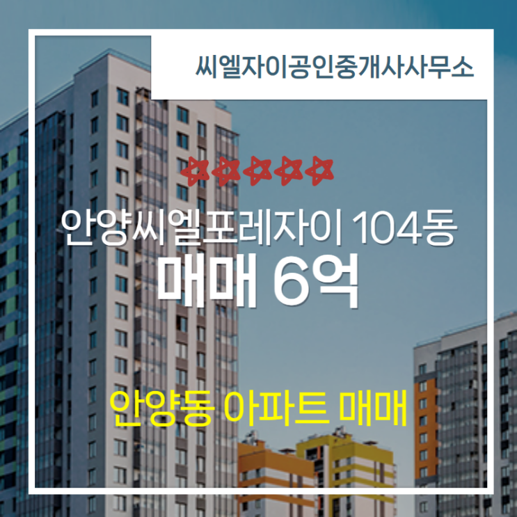 안녕하세요! 안양동 아파트 매매 관련 포스팅 지금 시작할게요! 자세한 매물정보 확인하고 가세요! 안양씨엘포레자이 학교배정은 안양초등학교로 단지에서 학교까지는 도보로 13분 입니다. 안양씨엘포레자이를 가장 잘 아는 입주민 부동산이며 입주민의 매도.매수.전세.월세를 꼼꼼하게 책임지고 있습니다. 고객 한분 한분의 상황에 맞는 맞춤형 상담과 세심한 중개 서비스로 '신뢰할수 있는 부동산'이라는 말을 들을수 있도록 항상 최선을 다하고 있습니다. 당신의 소중한 부동산, 씨엘자이공인중개사사무소가 함께 하겠습니다. 갭투자추천,풀에어컨,놓치지마세요 평면도 기본형 확장형 씨엘자이공인중개사사무소 오시는....... <img src="https://blogthumb.pstatic.net/MjAyNjAxMDNfNDgg/MDAxNzY3NDIyOTg3Mjk3.oQtUfUZix9b82hJ0TpWrlkw0IV4B0UDhynqctK9ZHocg.CfNVsiss6Rh841dY05scQrCr0DTVqWnMg-R2Am7jcWkg.PNG/ab260556-1dfd-4a61-8a5f-d993a4d79b06.png?type=s3" />