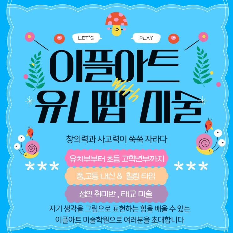 안녕하세요~ 신입생 문의가 솔솔~~~ 들려오는 요즘! 유치부 , 초등 저학생 고학생 모두 다른 각오를 가지고 ~ 이플아트를 방문해 주시고 있습니다. 유치부 모집 * 5세~6세친구들은 체험 꼭 권장 드립니다. ( 꼭 체험 후 가입을 권해 드리고 있습니다. ^^ 선생님 욕심으로 학생을 받지 않으려 합니다. 아직 준비가 안된 친구들이 학원을 처음 접하게 되는 아이들이기 때문에 재미있다가도 힘들거나 어렵게 느껴지면 그친구에게는 미술이 영영 ㅜㅜ 재미 없는 과목으로 기억 될 수 있기 때문에 어린 아이들일수록 아이와 저 그리고 학부모님들과 생각이 아주 중요한하기 때문에 이 부분은 오해 없이~~ 준비 체험이라고 생각 부탁드립니다. ) * 7세....... <img src="https://blogthumb.pstatic.net/MjAyNjAxMDZfNjQg/MDAxNzY3NjY3MzcyODky.xv57WzZ57JU1BBYlMhZuJ6Xt0uRWQVy5ErrdvKrsPaMg.iEV_B8VFv4LkWj9JtaEN3_XDqHsPIiCCeb1jHPH6Xf0g.JPEG/%BD%C5%C0%D4%BB%FD_%B8%F0%C1%FD.jpg?type=s3" />