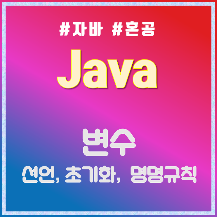 안녕하세요? 코딩클래스입니다. 자바 기초부터 하나씩 차근차근 배워보는 시간입니다 지난 시간은 첫번째 시작하는 시간으로 main 함수부터 시작해서 'hello world!'를 출력하는 print 함수까지 알아봤어요. https://blog.naver.com/codingclass/224222192071 학원에서는 시간도 제한적이고, 수업의 목적이 있기 때문에 그렇게 못하지만 지금 여기에서는 천천히 진도를 나가려고 합니다. 그러니 이해가 안 된다면 다시 읽고, 다른 글을 또 찾아보고, 코드도 적어보고.... 천천히 따라오시길 바래요. 자, 오늘은 변수 variable에 대해 알아볼 겁니다. 변수가 무엇이고, 어떻게 선언하고 사용하는지, 이름을 짓는데 어떤 규칙이 있는지 알....... <img src="https://blogthumb.pstatic.net/MjAyNjAzMjRfMjUz/MDAxNzc0MzM1Njg3Mzc2.uTsvDr0fQq6-TWQ2hIwJQIqrj081yb6ByRAkMGnP_Ukg.2xURlx_Kyd2nXiFB1ylKlupd0Y6kiZdrl69QKzjnS14g.PNG/%BD%BD%B6%F3%C0%CC%B5%E52.PNG?type=s3" />