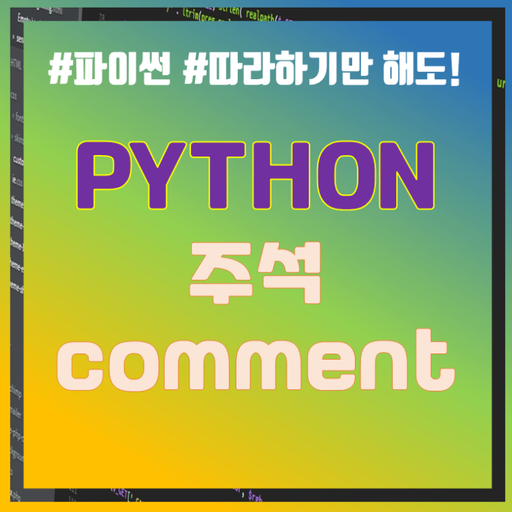 안녕하세요? 코딩클래스입니다. 파이썬을 기초부터 하나씩 차근차근 배워보는 시간입니다 오늘은 기초 중에 기초인 주석에 대해 알아보려고 해요. 한달 전에 작성한 코드를 보면서 내가 왜 이렇게 작성했지? 할 때도 있고 다른 사람이 짠 코드를 보면서 이걸 왜 이렇게 했지? 무얼 하고자 이렇게 썼을까? 하는 생각이 들때도 있습니다. 내 코드를 남이 볼 때 쉽게 이해시키기 위해 설명을 해주고, 의도를 잊을 경우를 대비하여 추후에 보게 될 때 힌트를 남겨줄 수 있는 것이 주석이랍니다. 주석이란? 주석은 '낱말이나 문장의 뜻을 쉽게 풀이함. 또는 그런 글' 이라는 뜻입니다. 즉, 우리가 작성한 코드를 쉽게 풀이해주는 말을 덧붙....... <img src="https://blogthumb.pstatic.net/MjAyNjAzMDVfMzMg/MDAxNzcyNzAyMzMzMjg0.I2XbF4QMtWjRVHnVV66ViMdv2FrX3Ej4gvsWInC8hVUg.196WymredEEfDqvi1GG3w6FhJyMLugJU5e6wzEgrW7kg.PNG/39_comment.PNG?type=s3" />