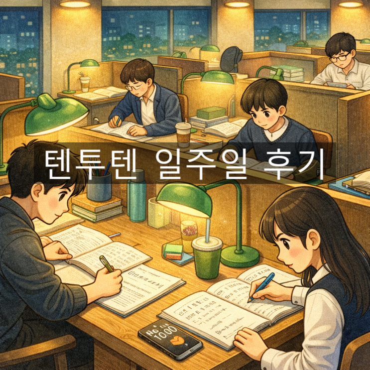 텐투텐반 일주일 후기 조금 힘들지만, 보람은 확실합니다 텐투텐반을 시작한 지 일주일. 짧은 시간이지만 변화는 분명합니다. 가장 큰 변화는 공부 시간의 ‘절대량’입니다. 아침부터 밤까지 생활 리듬이 잡히면서 하루 자기주도 학습 최소 6시간 이상이 자연스럽게 확보됩니다. 억지로 붙잡아 두지 않아도, 환경이 공부하게 만듭니다. 보통 방학에는 정규 수업과 특강이 섞여 있다 보니 시간 관리와 효율성이 무엇보다 중요합니다. 그런데 집에서 공부하면 책상에 앉아는 있어도 집중은 흐트러지고, 핸드폰을 들여다보며 시간이 새는 경우가 많습니다. 텐투텐반은 이 지점을 정확히 해결해 줍니다. 공부 계획을 세우고, 그 계획이 실제로 지켜....... <img src="https://blogthumb.pstatic.net/MjAyNjAxMDVfMjUy/MDAxNzY3NTc5OTMxNjg3.fqD-zPwt43QuV2K9Wg8p6kJTsEtvsd8G1OtyLeLYZugg.voHxyzV02dj9kVtST12hWLVTq_trodNrXKZUkVTBR_cg.PNG/ChatGPT_Image_2026%B3%E2_1%BF%F9_5%C0%CF_%BF%C0%C0%FC_11_22_58.png?type=s3" />