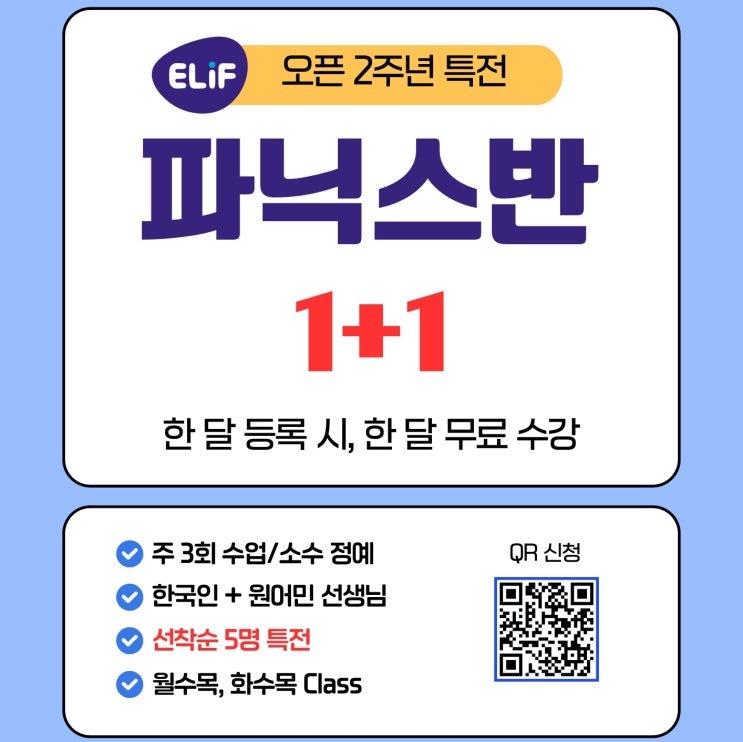 [파닉스반 1+1] 엘리프어학원 신규 클래스 개설 안내