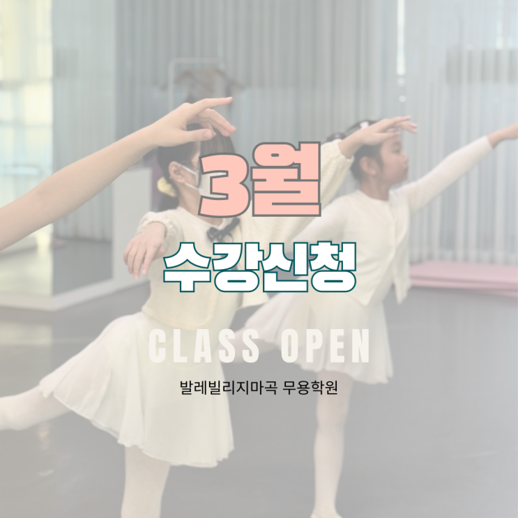 Since 2019 마곡지구 발레 & 댄스 교육스튜디오 안녕하세요! 발레빌리지마곡 무용학원 입니다 차갑던 공기의 기류가 바뀌고 봄바람이 다가오는, 새 학기가 시작되는 3월! 새로운 마음가짐과 목표를 다짐하고 있는 재원생 여러분, 그리고 새롭게 발레빌리지와 특별한 시작을 함께할 신규생 분들을 위한 수강신청 안내를 드려요 스튜디오 교육 프로그램 소개 Kids ballet 유아발레 Kids Dance 키즈방송댄스 영유아 성장도움 프로그램 Junior ballet 어린이체형교정발레 K-POP Dance 어린이방송댄스 어린이 키성장 및 체형교정 프로그램 Senior ballet 성인취미발레 취미와 운동, 스트레칭 기반 프로그램 1:1 Private Class 개....... <img src="https://blogthumb.pstatic.net/MjAyNjAyMjNfMTMy/MDAxNzcxODQxNTY1MTE3.W9-i_kNovbVUeAuR_bfl-n22BiI5LWyQfCqt3IZNMoAg.elAwC2zlCg_KA-ndMFzl_Dp_r1NFUZGqNEye3XrDSaUg.PNG/26_3%BF%F9%BC%F6%B0%AD%BD%C5%C3%BB.png?type=s3" />