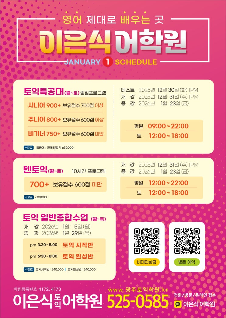 여러분의 토익 점수를 급상승시키는 곳 - [광주토익학원 추천 이은식어학원] 2026년 1월 안내