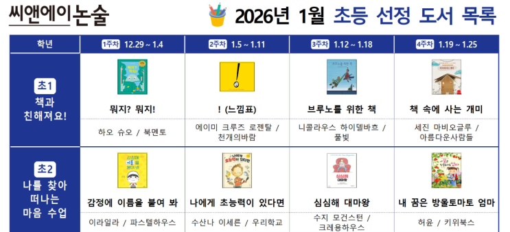 [광주봉선 씨앤에이] 예비초 1,2 커리큘럼 안내