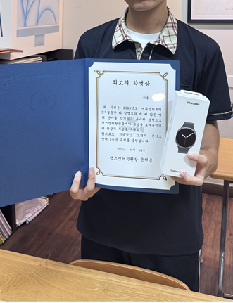여름방학인 7월중순부터 8월말까지 학원에서 보카 450개씩 월요일과 금요일에 단어시험을 쳤고, 한 주에 총 900개를 불합격 한번없이 모두 통과하면 총 2명의 학생에게 워치를 주겠노라~ㅎㅎㅎㅎㅎ 이벤트를 진행했었습니다! 우리 학생들의 영어실력에 있어서 가장 기본이 되는 단어암기를 너무 힘들어하고, 또 하기 싫어해서 생각해낸 동기부여 이벤트였습니다. 생각보다 많은 학생들이 참여를 했고 너무너무 열심히 공부하여 학원에서 오히려 당황할정도....^^;; 총3명의 학생이 결국 끝까지 통과하여 2명만 주려고 했는데... 우리 학생들 2명은 워치, 1명은 한달원비장학금을 받는것으로 마무리~^^ 한명은 아쉽게도 사진을 못찍었네요 ㅠㅠㅠ....... <img src="https://blogthumb.pstatic.net/MjAyNTEyMTVfNDIg/MDAxNzY1Nzc5MTY2ODQ2.L1lQzjgm9IIhl80l8cindbCoFo1V785fIBbvCHdkPQog.NG4C3jkQeGlX2RFLUwFpdfimdgvEHQoZnZapJWyq8wEg.PNG/1.png?type=s3" />