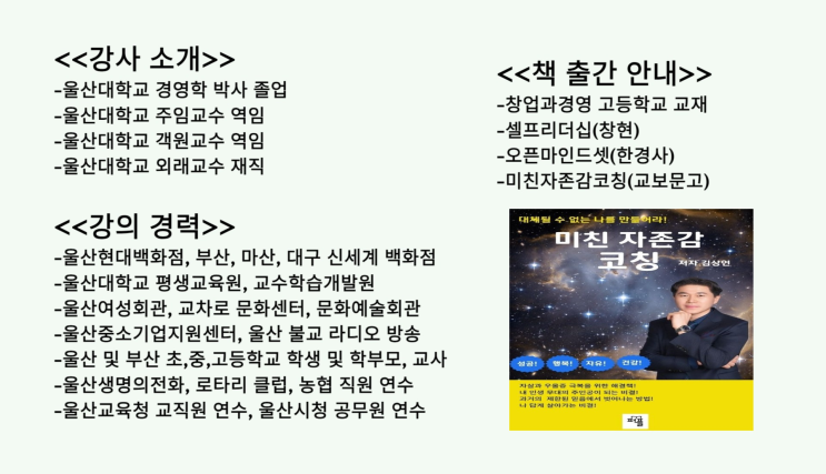 "미친 자존감 코칭" 책 출간 소식안내문-울산스피치학원, 울산면접학원, 울산리더십학원-셀프리더십아카데미학원
