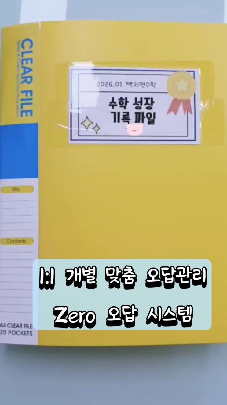 일단 아래 글 읽어보세요. 방학 시작하면서 개별 학생들의 오답 파일을 만들어서 관리했어요. 눈에 띄게 실력이 좋아진 학생들이 보이고 어제 오늘 아이들에게 모두 자신만의 오답 기록파일을 배부했습니다. https://blog.naver.com/bjymath2022/224149978168 학기중에도 오답관리 시스템(Zero 오답)은 계속됩니다. 1분짜리 동영상으로 만들어봤어요. 수학 영상만 만들다가 이런 인스타 감성으로 만들려고 하니 시간도 많이 걸리고 정말 어렵네요 ;;; 그래도 학부모님들 피드백이 좋아서 공유합니다. <img src="https://phinf.pstatic.net/image.nmv/blog_2026_02_28_2989/63TQqUUP2Y_01.jpg?type=f480x480" />