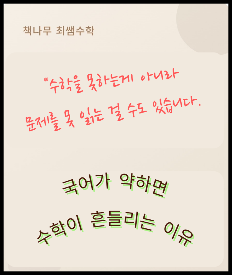 [책나무 최쌤수학]국어가 약하면 수학 성적도 흔들리는 이유