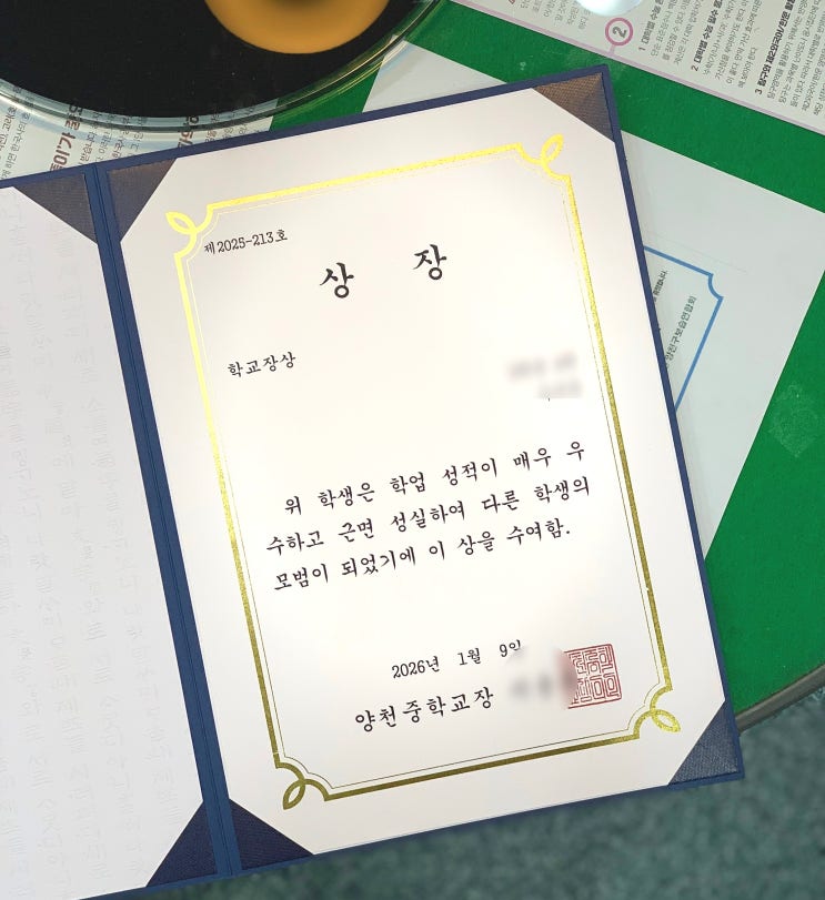 안녕하세요 글맥학원입니다. 중3 학생들이 졸업하는 시즌입니다. 최근 치러진 양천중 졸업식에서 우리 글맥의 자랑인 이O연 학생이 양천중 학교장상을 수상하는 영예를 안았습니다. 중학교 3년 성적 총합 결과, "전교 1등"으로 졸업하게 되어 [ 양천중학교 학교장상 ]을 수상하게 되었는데요. 성적 우수 학교장상은 생활기록부에 기재되는만큼, 고등학교 진학 전 받을 수 있는 최상의 결과물입니다. 3년이라는 긴 시간 열심히 노력하여 귀한 결실을 맺은 우리 친구에게 진심어린 박수를 보냅니다. 성적 만들기가 아닌, '과정'에 집중하는 학습 태도 오늘의 주인공인 O연 친구는 단순하게 한번 시험을 잘 본 것이 아니라, 중....... <img src="https://blogthumb.pstatic.net/MjAyNjAxMjVfMjY0/MDAxNzY5MzQ5MDg4NzE4.jJy3bP9EmNu6pMj_VGhoCHPVG3EWUoIYtkffOPz-_0wg.IiTkNMswo5wbbUJFyz0tnaTuwvgvUn2CLUx5nr9-pakg.JPEG/%BE%E7%C3%B5%C1%DF%C7%D0%B1%B3%C7%D0%B1%B3%C0%E5%BB%F3.jpg?type=s3" />