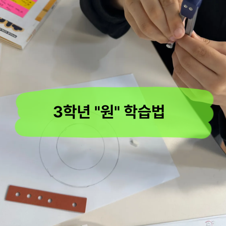 강서 초등학교는 원 단원을 제일 나중으로 빼서 배우고 있는 중이에요. 지금 배우는 원은 6학년 원의 둘레와 넓이와도 연결되고 중등 과정에서 원의 성질과도 연결이 되는 개념입니다. 3학년 과정에서의 원 학습 팁은 "많이 그려보기"입니다. 지름, 반지름, 원의 중심 이러한 용어들이 아직 낯설고 말로만 들었을 때는 잘 와닿지 않습니다. 컴퍼스뿐만 아니라 띠종이 등 여러 가지 도구를 이용해서 그려보세요. 원의 중심과 반지름, 지름이 훨씬 더 실감 날 거예요. 무엇보다도 원은 한 점과 같은 거리에 있는 점들의 모임이잖아요. 이렇게 많이 그려보면 이 개념이 더욱 잘 와닿는답니다. 도형 수업을 할 때는 교구를 많이 활용하고 있....... <img src="https://blogthumb.pstatic.net/MjAyNTEyMTVfNjQg/MDAxNzY1NzkxNjE1ODQy.MjpWbbGzmuuCCnGm37_hm-zjKAKgboyVK7U4cie5_6gg.Y8EKsaV0BCV6aHI7Iu4Ebx2087FCL7ZQ246vE0-_4eIg.PNG/%C1%A6%B8%F1%C0%BB%A3%DF%C0%D4%B7%C2%C7%D8%C1%D6%BC%BC%BF%E4.%A3%A81%A3%A9.png?type=s3" />