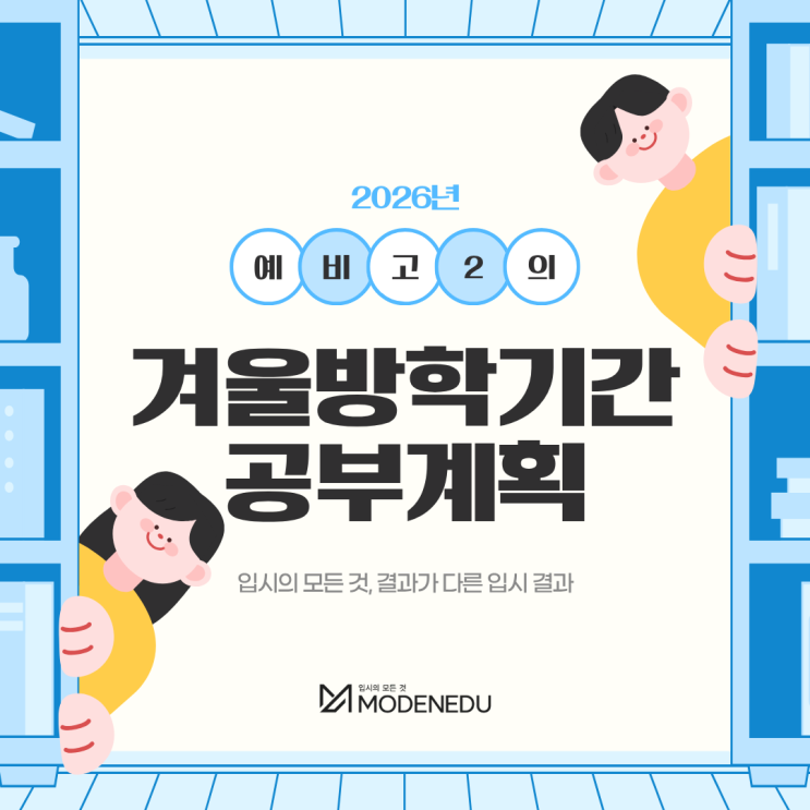 입시의 모든 것 결과가 다른 입시 결과 모든에듀케이션 예비 고2 겨울방학 공부계획 고1을 마치고 맞는 겨울방학 이 시기를 그냥 넘기면 2학년이 버겁게 느껴지신 적 있으신가요? 겨울방학은 길지 않지만 공부 방향을 바꾸기엔 충분한 시간입니다 그리고 이 방학이 지나면 학교 수업은 곧바로 내신과 수능 범위로 이어지죠 그래서 예비 고2 겨울방학은 성적이 한 단계 달라질 수 있는 분기점이자 공부 습관을 다시 잡을 수 있는 여유 구간입니다 예비 고2에게 겨울방학이 중요한 이유 고1 때까지는 “학교 시험 잘 보면 되지”라는 생각으로도 버틸 수 있습니다 하지만 2학년부터는 과목 난이도 1학년 대비 달라지죠 그때 가서 허둥대지 않으....... <img src="https://blogthumb.pstatic.net/MjAyNTEyMTlfMjMg/MDAxNzY2MTMyMjk0NjY5.Y28mKzNQ32p2yEk0HiH7zdesaU4pN4ck2bSb79yxI8Mg.TmacJ_qQt-HFlW9inrIIz_ciRj4qudJEvZsvd4UTQ6Ag.PNG/1.png?type=s3" />