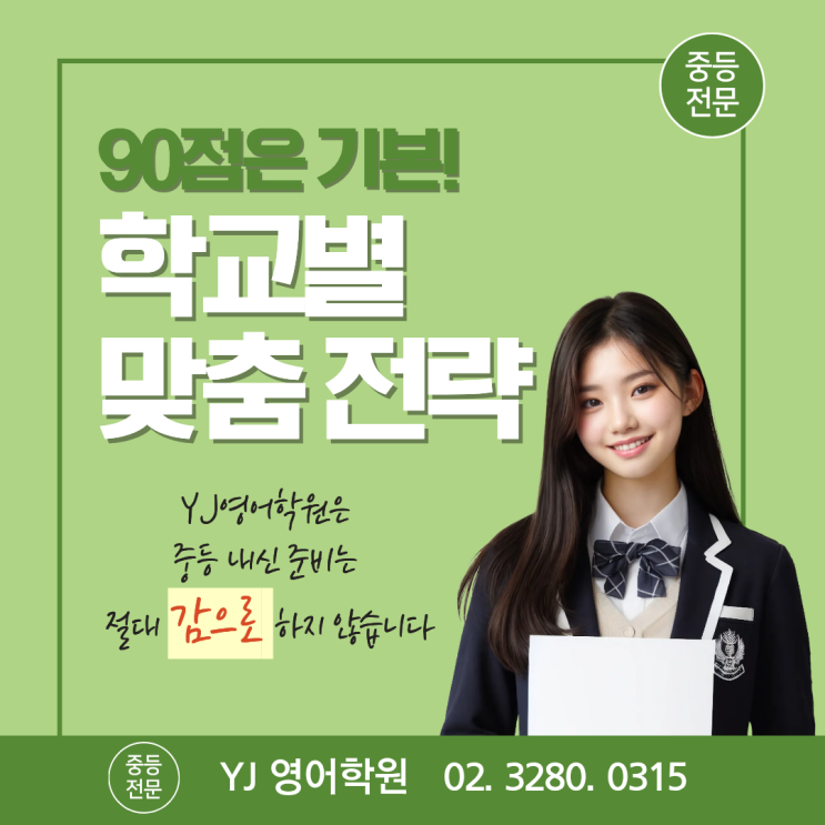 흑석동 중등영어전문 YJ-“90점은 기본! 학교별 맞춤 전략이 만든 결과입니다”