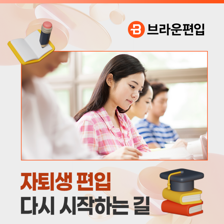 안녕하세요! 편입, 대학을 바꾸다 관리, 합격을 만들다 브라운편입입니다. 자퇴를 결정한 이후 가장 먼저 떠오르는 질문은 단순합니다. “자퇴했는데, 편입을 해도 될까요?”라는 고민은 많은 자퇴생들이 공통적으로 마주하는 생각인데요! 학교를 그만둔 선택이 혹시 너무 성급했던 건 아닐지, 다시 학업을 이어가는 데에 불리하게 작용하지는 않을지 걱정이 앞서기 마련입니다. 특히 주변에서 명확한 답을 해주는 사람이 없다 보니, 혼자서 고민만 깊어지는 경우가 많습니다. 하지만 자퇴 이후의 시간은 이미 끝난 선택이 아니라, 새로운 방향을 설계할 수 있는 여백이기도 합니다. 편입은 고등학교 졸업 이후의 학력 구조를 전제로 하는 시험이....... <img src="https://blogthumb.pstatic.net/MjAyNjAyMDRfMjE1/MDAxNzcwMTY4Mjk3NTY1.DE0HJh9Nj5oyQs1Extvd8gcRkaMFc-ZopV51DyQHDBwg.JJCTK6zSvd9qbHBZMFEayxZ311yYOJVSxVE7NUZ41q8g.PNG/%BD%E6%B3%D7%C0%CF_%BA%EA%B6%F3%BF%EE%C6%ED%C0%D4.png?type=s3" />