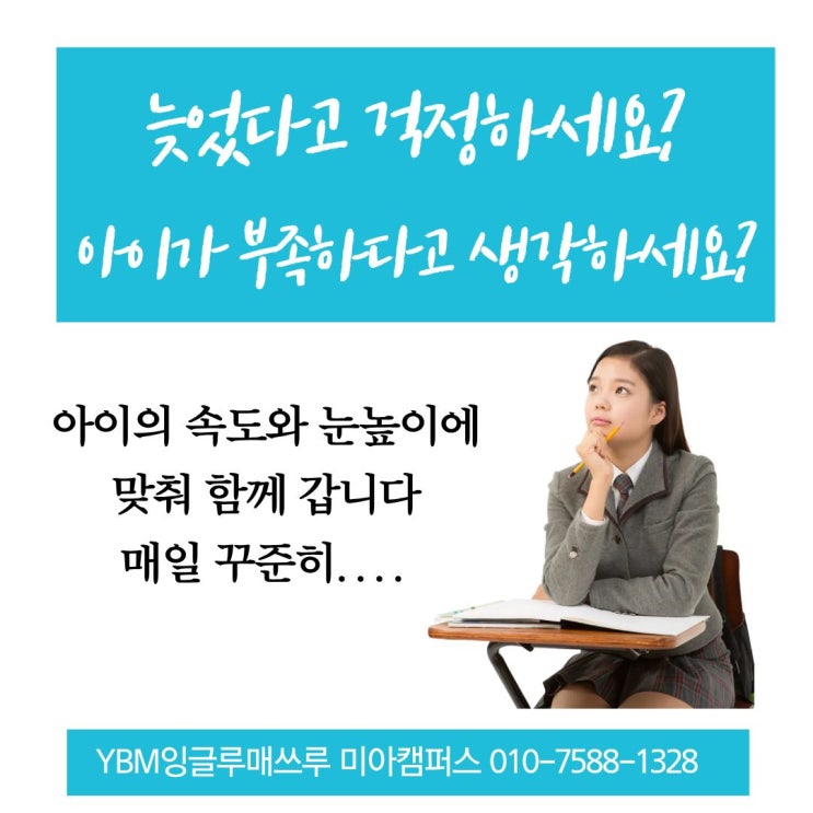 아이가 부족하다고 생각하세요? 늦었다고 조급하신 마음이 드시나요? 미아동 영어, 수학학원 YBM잉글루매쓰루 미아캠퍼스에서 함께 합니다