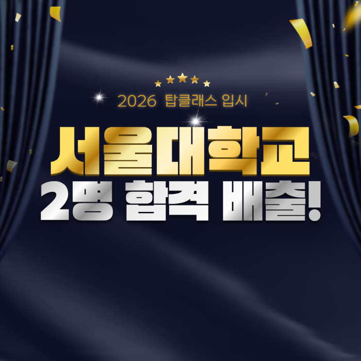 대방동 탑클래스학원 2026 서울대학교 합격생 2명 배출!