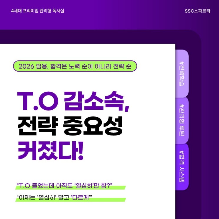 원주 임용 준비, T.O에 따라 전략적으로 대비해야 합니다. 원주 관리형 독서실 SSC스파르타