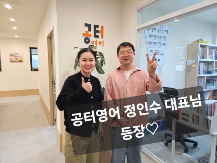 어머님들 Jackson T예요! 금요일 저녁을 잘 보내고 계실까요? 치맥? ㅎㅎㅎㅎㅎ 저는 오늘 공터영어 정인수 대표님을 센터로 모시고, 약 2시간 동안 쉬지도 않고 공터영어 학습에 대해 깊이 있게 이야기를 나누었습니다. (진짜 2시간 꽉꽉 채웠어요 ㅎㅎㅎ) “어떻게 하면 아이들이 영어를 더 즐겁게 배우고, 원어민스럽게 사고하도록 할 수 있을까?" 이런 종류의 질문들을 중심으로 숼세 없이 의견을 나눴어요! 아이들이 영어를 ‘공부’가 아닌 ‘자신의 언어’로 말할 수 있도록 돕는 것, 그리고 그 실력이 자연스럽게 학교 성적으로 이어지게 하는 것. 그것이 저희가 만들어가고 싶은 교육인 것 알고 계시죠? 그래서 미친듯이 뛰고 있답....... <img src="https://blogthumb.pstatic.net/MjAyNjA0MDNfNjMg/MDAxNzc1MjEwMjIxMjA2.vtnbKeIdlAj7Qz5kyl4HkN3TEnFNbo_FS4qISjDQ-kog.vecybcgFwHDxYFHNv00DaUa5upoSLV1j_TMnYpniGhMg.JPEG/900%A3%DF20260403%A3%DF171226.jpg?type=s3" />