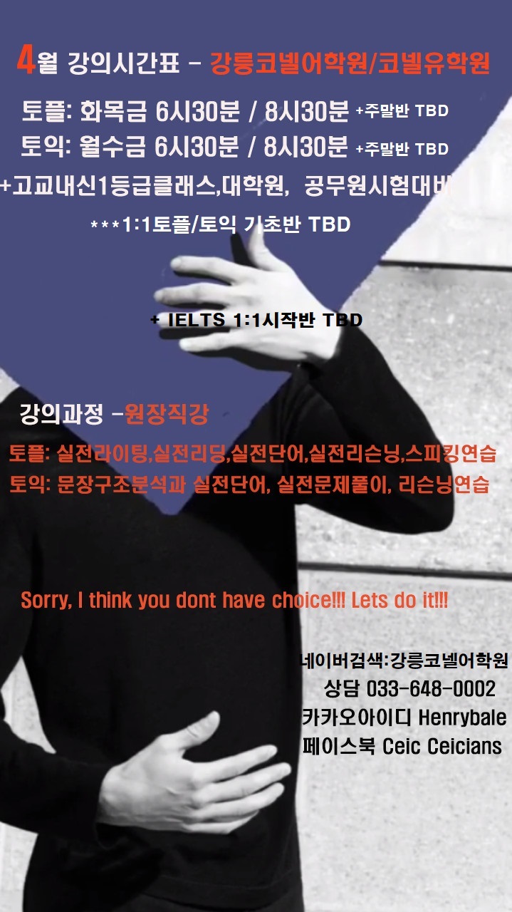 2026년 Spring"4월강의시간표" 토플과토익[강릉영어학원/강릉토플학원]강릉토익학원 강릉코넬어학원 강릉어학원 강릉유학원 강릉성인영어 IELTS