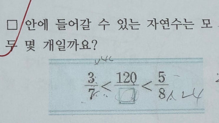 안녕하세요~ 단구동 수학학원 스마트 해법수학 남원주점 산수아저씨입니다~ ^^ 3월인데도 낮에는 무척이나 덥더라고요 얼마나 더우려나 싶기도 하고, 늘 그렇듯이 올 대보름에도 정쌤에게 더위를 팔았으니 다행이지 싶기도 하고, 다들 더위들은 파셨는지 모르겠네요~ ^^;; 오늘 풀어 볼 문제는 초5 약분과 통분 많이들 힘들어하는 단원입니다. 약수와 배수, 약분과 통분, 분수의 계산까지. 개념을 확실하게 정리해 두셔야 나중에 어려움을 겪지 않으실 거예요~ ^^ 어떻게 풀까? ① 분수의 크기를 비교할 때 분모의 통분을 이용한다. ② 이 문제에선 분모를 통분할 수 없으니, 분자를 같게 만들어 보자. ③ 분자가 같은 분수들의 크기를 비교하자....... <img src="https://blogthumb.pstatic.net/MjAyNjAzMzBfMjI0/MDAxNzc0ODI4MzY5ODQz.8Foo6ZTOOUcHTL7PiA1IvY_DlKLnBhz5MKB9R53noYEg.vynQ1TudJiJEbUbVHVvEO-YaT_iEjDb0oFFxmdQNBUcg.JPEG/KakaoTalk_20260330_084119142_01.jpg?type=s3" />