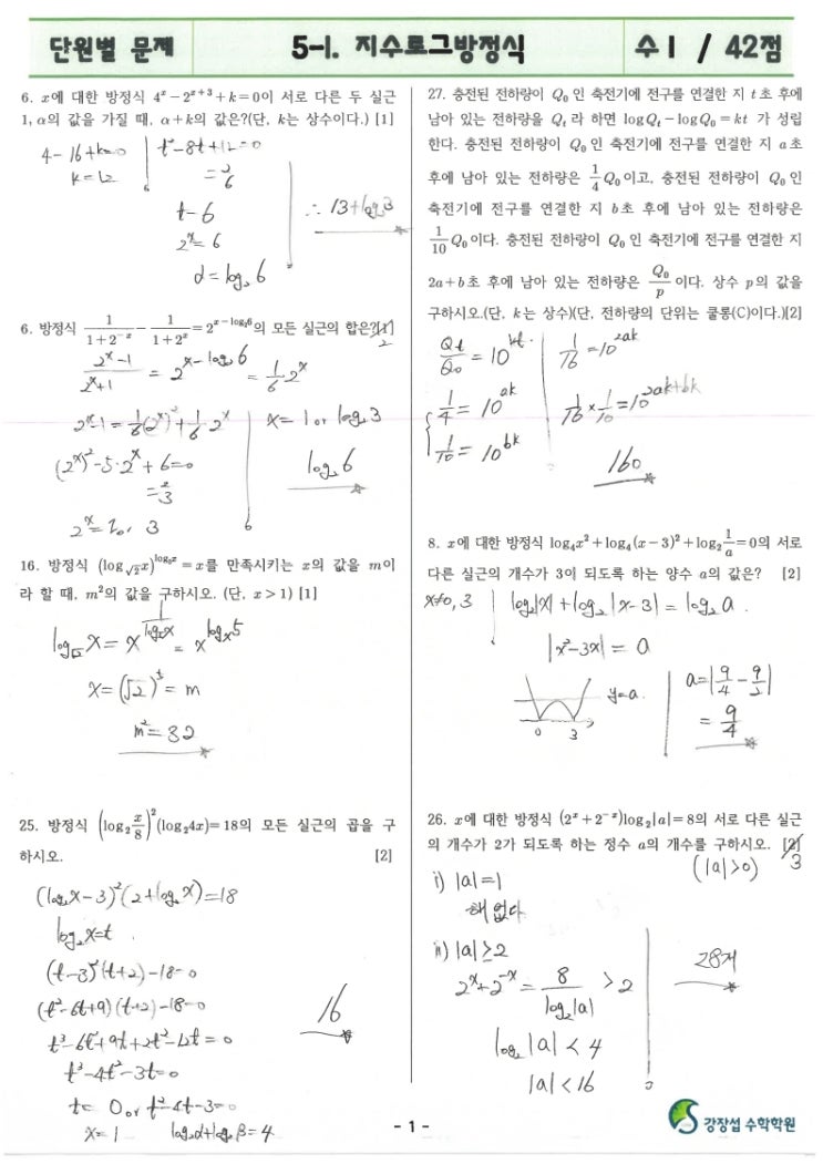 단원별문제-수1-5-1.지수로그방정식-원장풀이